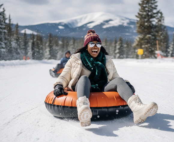 Slide Into Fun! Feel the rush of tubing at Heavenly, racing down perfectly groomed lanes with stunning mountain views all around. No skills or equipment required—just pure excitement and unforgettable winter thrills!